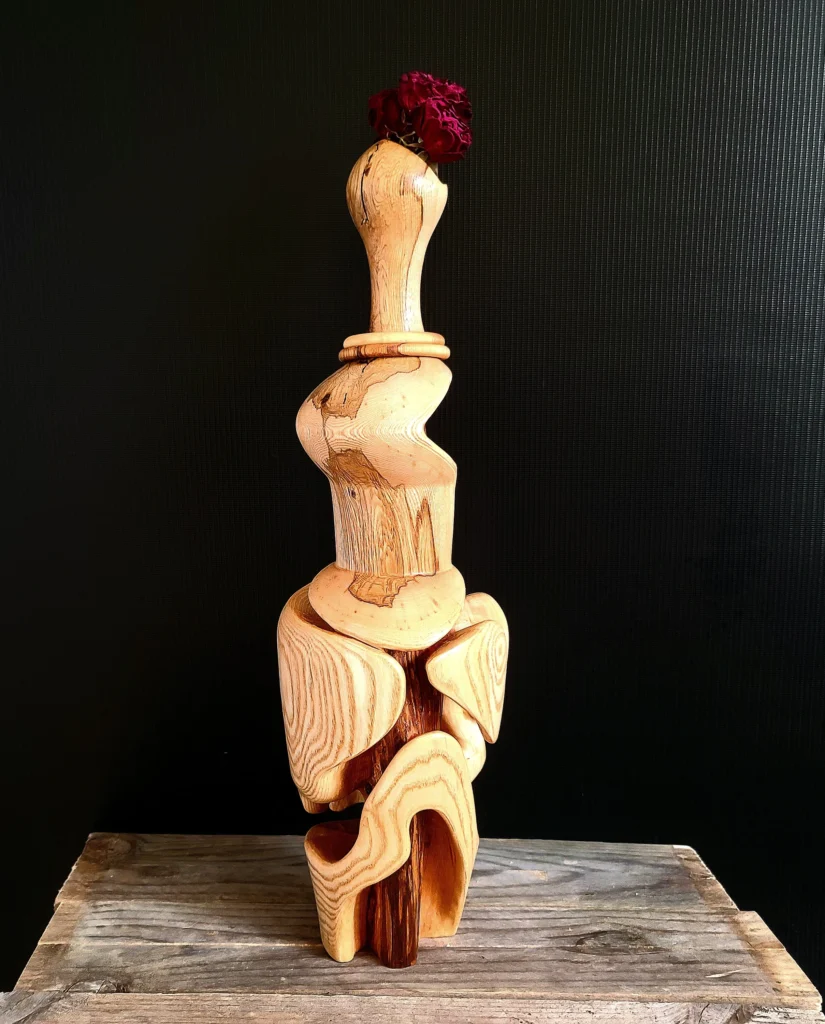 Me voilà aujourd’hui tourneur et sculpteur sur bois et c’est armé d’un tour, d’une tronçonneuse et de divers couteaux et gouges que je réalise aujourd’hui des objets de décoration personnalisés et sur mesure : vases, soliflores, lampes et lampadaires.