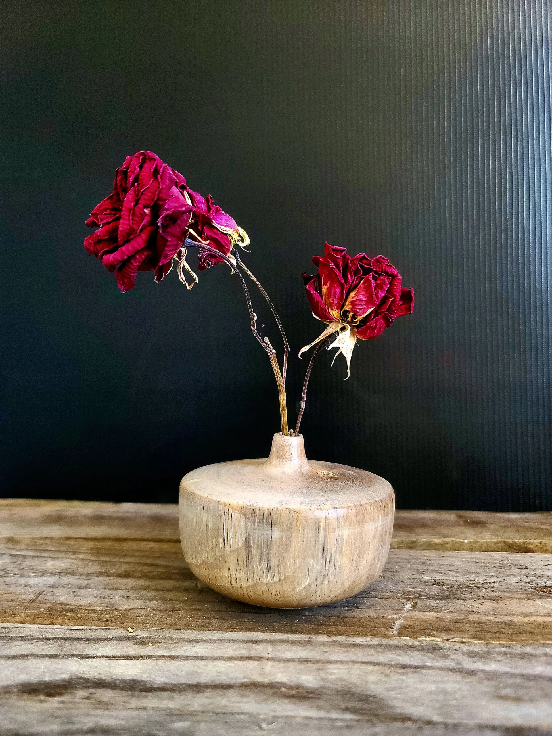 Bois d’Albizia tourné et poli.Il ne peut accueillir que des fleurs sèches